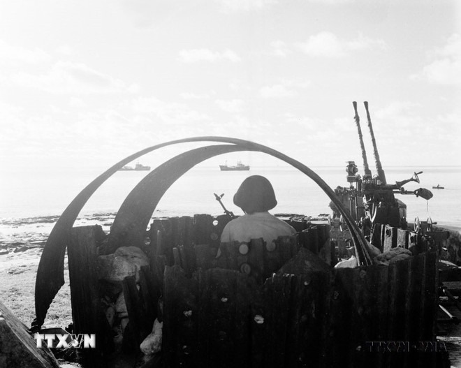 Trận chiến đấu bảo vệ chủ quyền Tổ quốc ở Gạc Ma thức tỉnh trái tim người Việt về nhiệm vụ thiêng liêng bảo vệ chủ quyền biển, đảo của Tổ quốc. Trong ảnh: Chiến sỹ đảo An Bang ngày đêm canh gác bảo vệ đảo năm 1984. (Ảnh: Hồng Thụ/TTXVN)