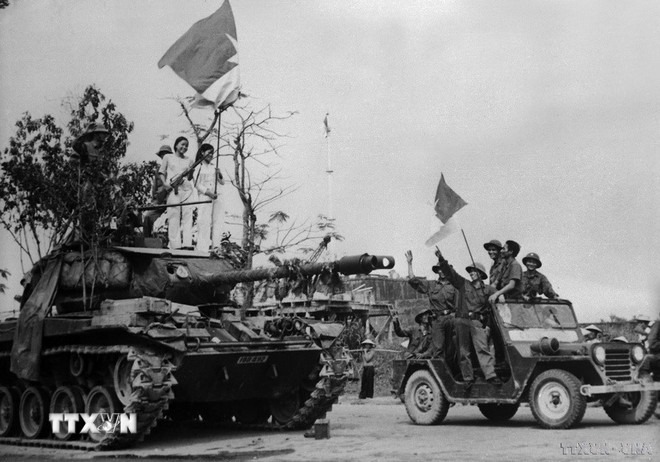 Xe tăng địch ở thành phố Huế bị quân Giải phóng và tự vệ đánh chiếm. (Ảnh: Nguyễn Đán/TTXVN)