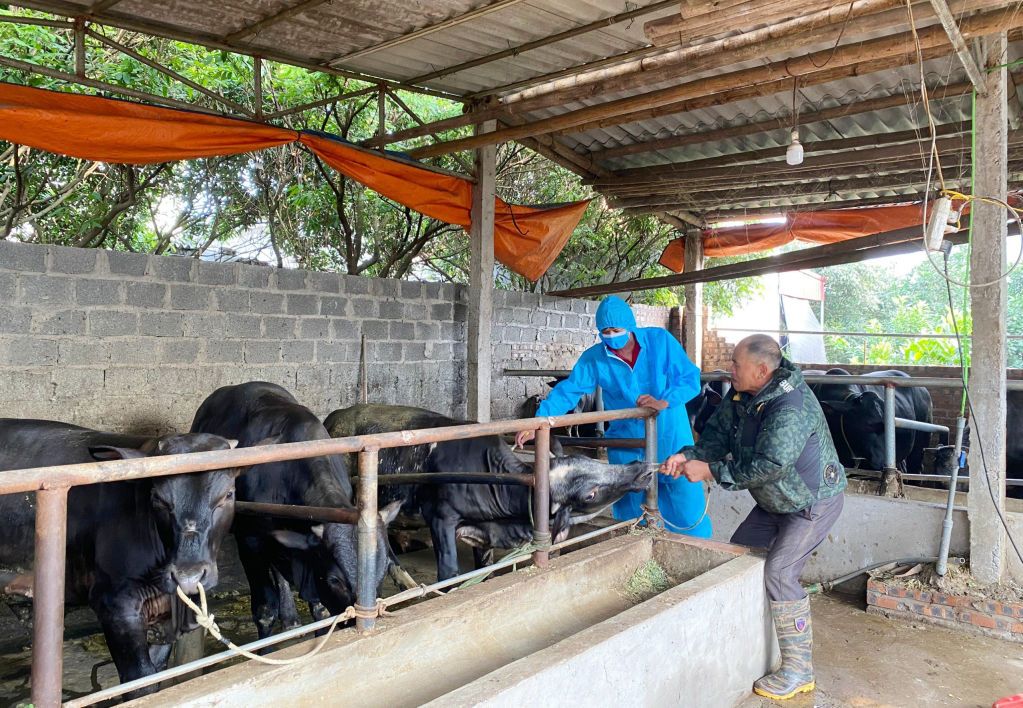 Cùng với đó, nhân viên Trạm thú y được phân công địa bàn thường xuyên hướng dẫn người chăn nuôi thực hiện các biện pháp phòng bệnh, áp dụng kỹ thuật chăn nuôi an toàn sinh học, vệ sinh, khử trùng, tiêu độc khu vực chăn nuôi; bổ sung chất dinh dưỡng, khoáng chất để nâng cao sức đề kháng cho đàn vật nuôi trước khi triển khai tiêm phòng; nhân viên thú y – khuyến nông tại các địa phương được chuẩn bị đầy đủ các phương tiện, dụng cụ, vật tư, hóa chất phục vụ công tác tiêm phòng... Việc tổ chức thống kê, rà soát đàn vật nuôi được chính quyền địa phương đôn đốc thực hiện khẩn trương để kịp tiến độ. Đến ngày 23/5, huyện đã tiêm vắc xin phòng 2 bệnh đỏ cho trên 33 nghìn con lợn; tiêm phòng vắc xin tụ huyết trùng cho hơn 3,2 nghìn con trâu, bò, đạt trên 80% kế hoạch. Các địa phương trong huyện đang tiếp tục rà soát và tiêm phòng bổ sung, bảo đảm chất lượng và số lượng trong đợt tiêm này.