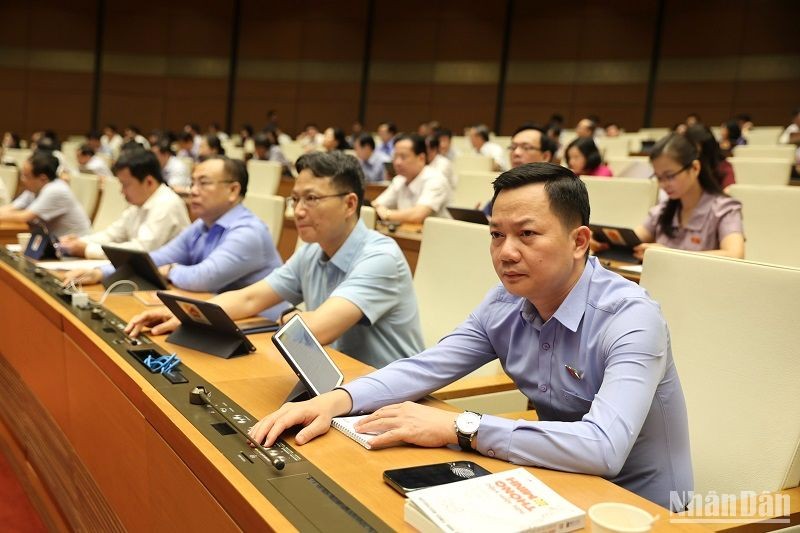 Quốc hội thông qua Luật Đấu thầu (sửa đổi) với tỷ lệ tán thành đạt 93,12%. (Ảnh: DUY LINH)