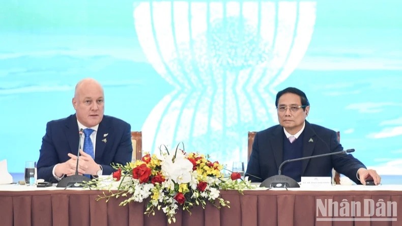 Thủ tướng Phạm Minh Chính và Thủ tướng New Zealand Christopher Luxon - khách mời danh dự Tọa đàm. (Ảnh: TRẦN HẢI)