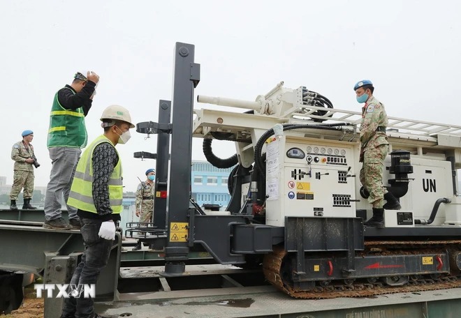 Lễ tiễn Đội Công binh số 2 lên đường thực hiện nhiệm vụ gìn giữ hòa bình Liên hợp quốc tại Phái bộ UNISFA, khu vực Abyei. (Ảnh: An Đăng/TTXVN)