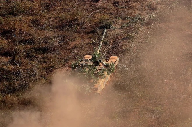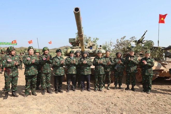 Xe tăng Quân đoàn 12 tham tham gia diễn tập. (Ảnh: Dương Giang/TTXVN)
