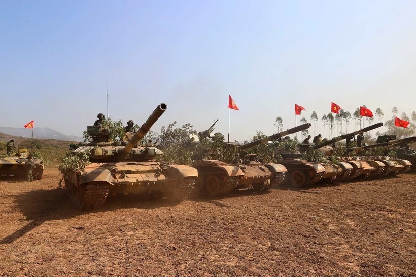 Lực lượng tăng thiết giáp Quân đoàn 12 tham gia diễn tập. (Ảnh: Dương Giang/TTXVN)