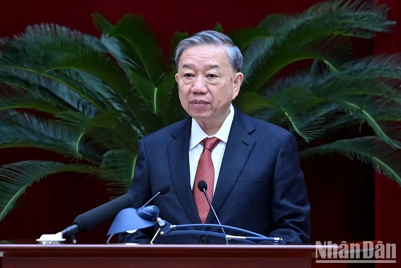 Tổng Bí thư, Chủ tịch nước Tô Lâm phát biểu khai mạc Hội nghị Trung ương lần thứ 10, khóa XIII. (Ảnh: ĐĂNG KHOA)