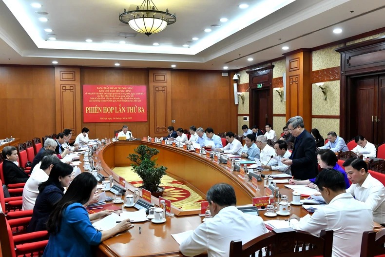 Tổng Bí thư giao Ban Tổ chức Trung ương chủ trì, phối hợp các cơ quan hệ thống lại đầy đủ các nghị quyết, chỉ thị, kết luận, văn bản hướng dẫn của các cơ quan Trung ương thành một tập tài liệu chung để tổ chức thống nhất thực hiện. Từ 16/4 đến hết tháng 10/2025, định kỳ hằng tuần, các Tổ chức Đảng ở Trung ương và địa phương báo cáo Ban Chỉ đạo, Ban Tổ chức Trung ương tiến độ thực hiện các nhiệm vụ; Ban Tổ chức Trung ương tổng hợp kết quả thực hiện trong toàn quốc, báo cáo Bộ Chính trị, Ban Bí thư tại các phiên họp định kỳ để chỉ đạo. Ban Tổ chức Trung ương - Cơ quan Thường trực của Ban Chỉ đạo thường xuyên theo dõi, nắm tình hình, tham gia ý kiến khi cần thiết trong quá trình triển khai các bước thực hiện nhiệm vụ của các cấp ủy, cơ quan, đơn vị.