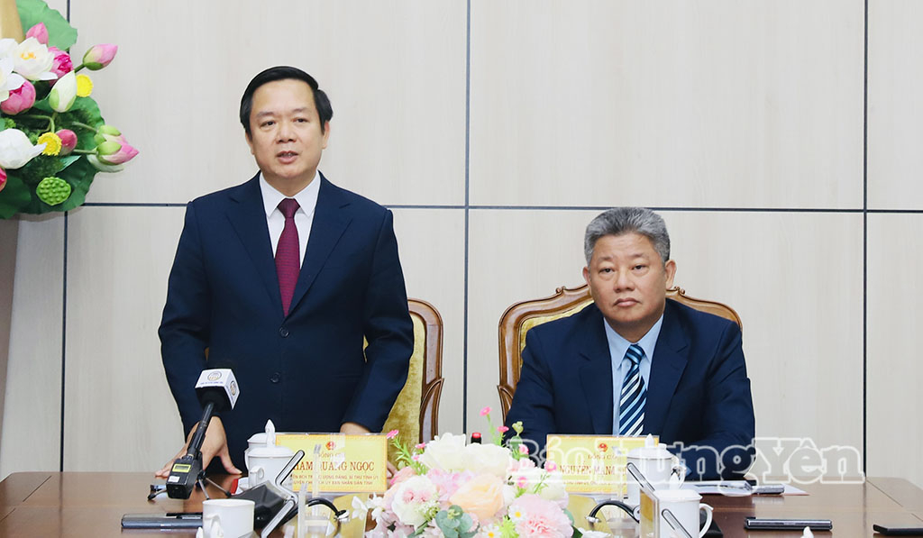 Phát biểu tại hội nghị, đồng chí Phạm Quang Ngọc, Ủy viên Ban Chấp hành Trung ương Đảng, Bí thư Tỉnh ủy chúc mừng đồng chí Nguyễn Mạnh Quyền được tín nhiệm bầu giữ chức Chủ tịch UBND tỉnh. Đồng chí gửi lời cảm ơn tập thể lãnh đạo UBND tỉnh, lãnh đạo các sở, ngành, địa phương trong thời gian qua đã luôn ủng hộ, tạo điều kiện, tham mưu kịp thời các giải pháp, từ đó giúp đồng chí hoàn thành tốt nhiệm vụ trên cương vị là Phó Bí thư Tỉnh ủy, Chủ tịch UBND tỉnh.