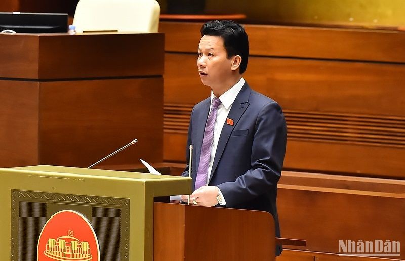 Bộ trưởng Tài nguyên và Môi trường Đặng Quốc Khánh trình bày báo cáo giải trình, tiếp thu, chỉnh lý dự án Luật Đất đai (sửa đổi). (Ảnh: THỦY NGUYÊN)