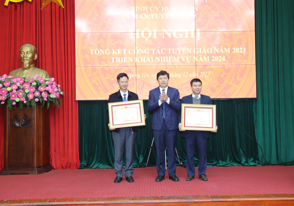 Tại hội nghị, 1 tập thể và 1 cá nhân có thành tích trong công tác, góp phần vào sự nghiệp xây dựng chủ nghĩa xã hội và bảo vệ tổ quốc được Thủ tướng Chính phủ tặng bằng khen; 9 cá nhân được Ban Tuyên giáo Trung ương trao kỷ niệm chương Vì sự nghiệp tuyên giáo; 2 tập thể có thành tích tốt trong thực hiện công tác phối hợp tuyên truyền biển, đảo năm 2023 được Bộ Tư lệnh Vùng 1 Hải quân tặng bằng khen; 11 tập thể và 15 cá nhân có thành tích xuất sắc trong công tác tuyên giáo năm 2023 được Ban Tuyên giáo Tỉnh ủy tặng giấy khen.