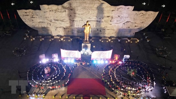 Gần 500 diễn viên, nghệ nhân tham gia biểu diễn vòng xòe tại lễ vinh danh nghệ thuật Xòe Thái. (Ảnh: Hữu Quyết/TTXVN)