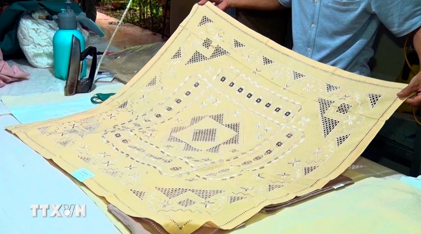 Sản phẩm của làng nghề thêu ren xã Ninh Hải, huyện Hoa Lư, tỉnh Ninh Bình. (Ảnh: Thùy Dung/TTXVN)