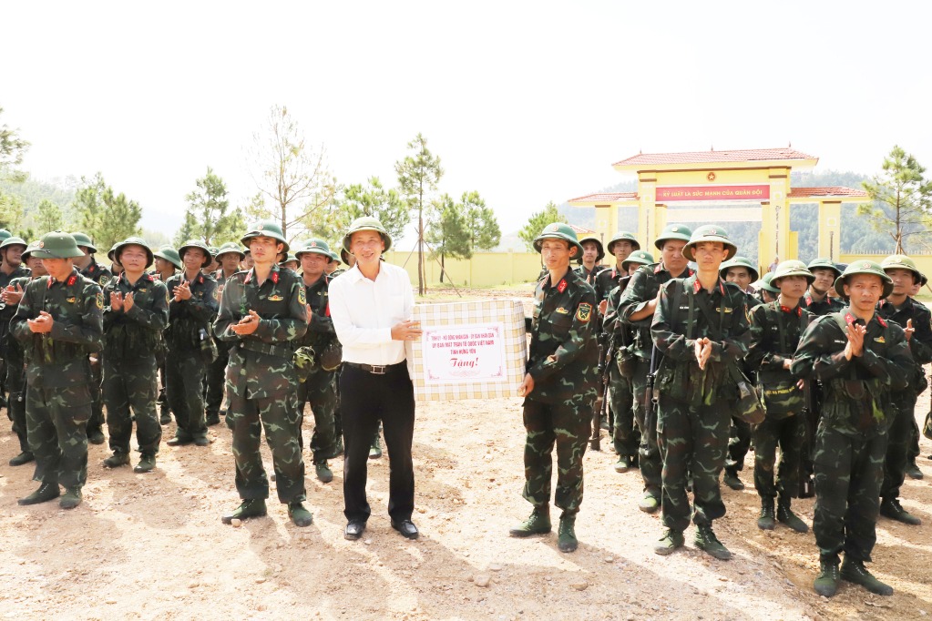 Đồng chí Phó Chủ tịch UBND tỉnh Nguyễn Hùng Nam tặng quà động viên lực lượng tham gia phần thực binh bắn đạn thật