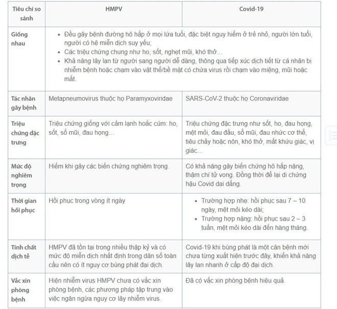 Theo các chuyên gia y tế, virus HMPV và virus Covid-19 hoàn toàn khác nhau, mặc dù gây ra một số triệu chứng đặc trưng tương tự nhau. Tuy nhiên, cả hai đều có những điểm tương đồng và khác biệt cần được làm rõ, cụ thể như sau:
