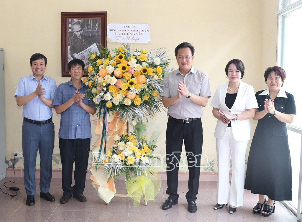 Bí thư Tỉnh ủy Nguyễn Hữu Nghĩa tặng hoa chúc mừng cơ quan Thường trú Báo Nhân Dân tại Hưng Yên
