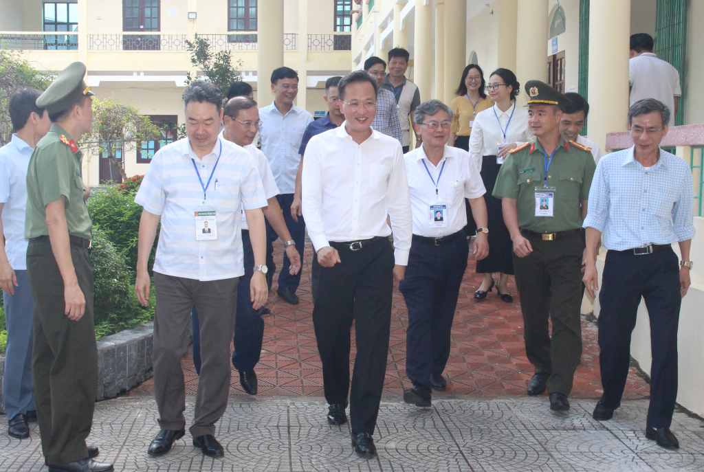 Cùng đi có đồng chí Nguyễn Duy Hưng, Phó Chủ tịch UBND tỉnh, Trưởng Ban Chỉ đạo thi tốt nghiệp THPT năm 2024 tỉnh; lãnh đạo Sở Giáo dục và Đào tạo; các thành viên Ban Chỉ đạo thi tốt nghiệp THPT năm 2024 tỉnh…