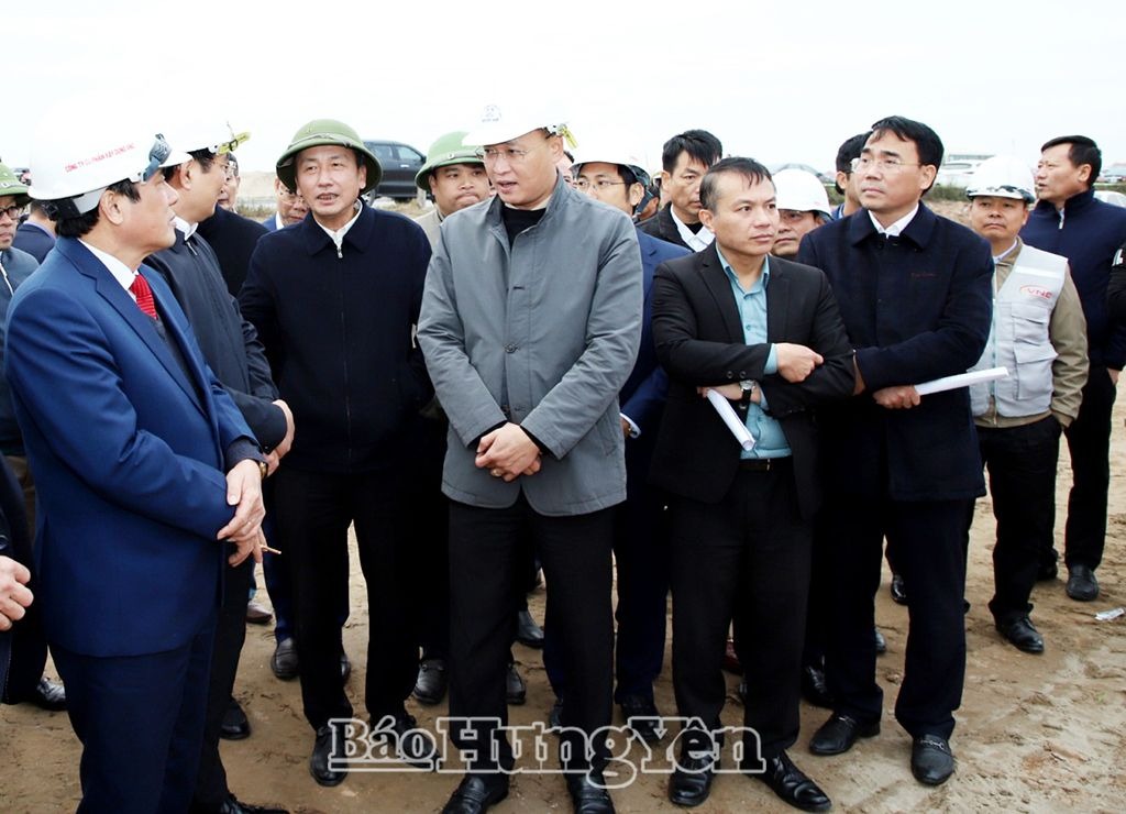 Đồng chí Nguyễn Hữu Nghĩa, Ủy viên BCH Trung ương Đảng, Bí thư Tỉnh ủy kiểm tra tiến độ thi công dự án đầu tư xây dựng đường bên đoạn Km19+640 (giao QL.38) đến Km24+240 (giao QL.39) tiếp giáp tuyến đường bộ nối đường cao tốc Hà Nội – Hải Phòng với đường cao tốc Cầu Giẽ - Ninh Bình