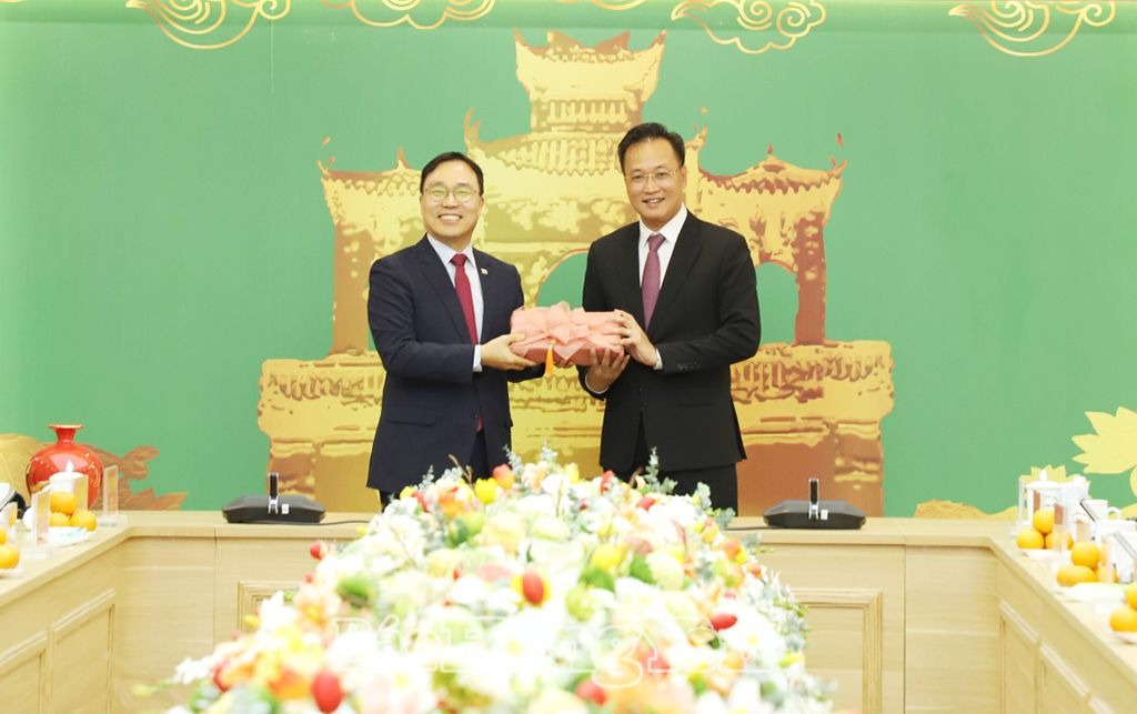 Ngài Choi Youngsam trao quà lưu niệm tặng Bí thư Tỉnh ủy Hưng Yên Nguyễn Hữu Nghĩa