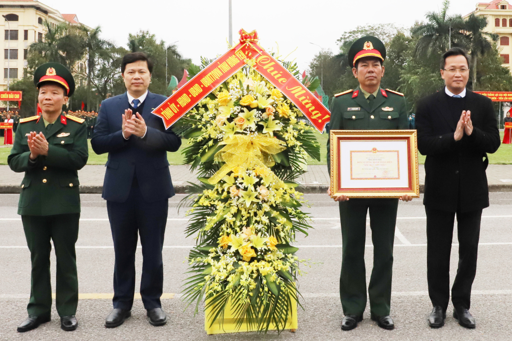 Trong chương trình lễ ra quân huấn luyện, Đảng ủy, Bộ CHQS tỉnh phát động đợt thi đua cao điểm “Tiến bước chiến sĩ Điện Biên – Tiến lên giành 3 nhất” năm 2024 tới toàn thể cán bộ, chiến sĩ LLVT tỉnh.