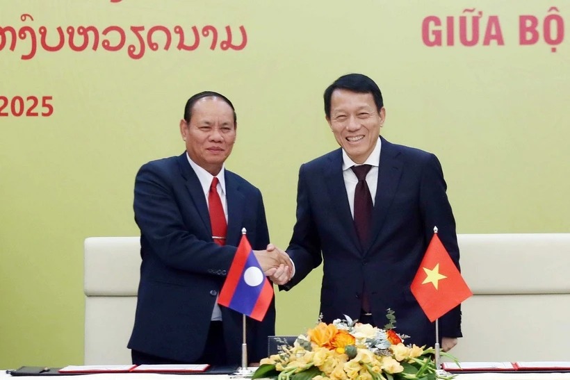 Kết thúc hội nghị, Bộ trưởng Lương Tam Quang và Phó Thủ tướng, Bộ trưởng Vilay Lakhamphong đã ký kế hoạch hợp tác năm 2025 giữa hai Bộ.