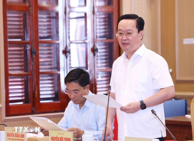 Ông Nguyễn Doãn Anh, Ủy viên Trung ương Đảng, Bí thư Tỉnh ủy Thanh Hóa, phát biểu tại buổi làm việc. (Ảnh: Phương Hoa/TTXVN)