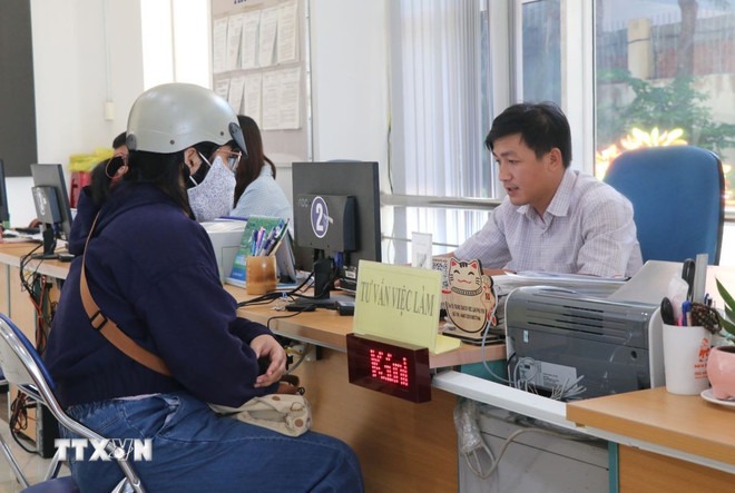 Tư vấn việc làm cho người lao động tại Trung tâm Dịch vụ việc làm Phú Yên. (Ảnh: Tường Quân/TTXVN)
