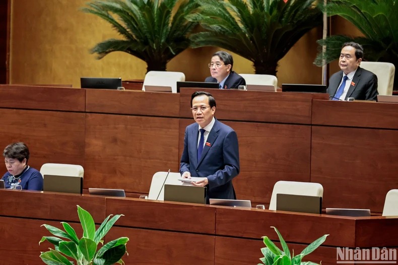 Bộ trưởng Lao động-Thương binh và Xã hội Đào Ngọc Dung phát biểu giải trình, làm rõ ý kiến đại biểu Quốc hội nêu. (Ảnh: DUY LINH)