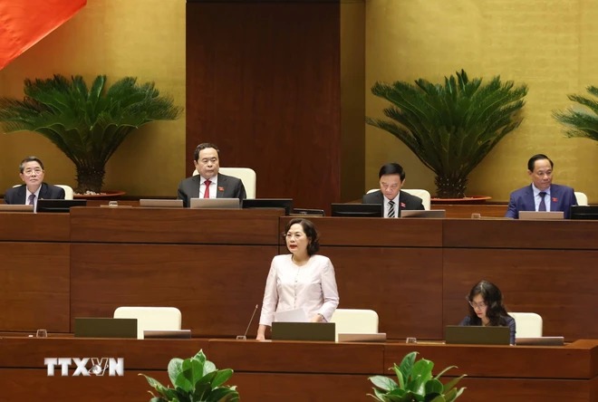 Thống đốc Ngân hàng Nhà nước Việt Nam Nguyễn Thị Hồng trả lời chất vấn. (Ảnh: Phương Hoa/TTXVN)