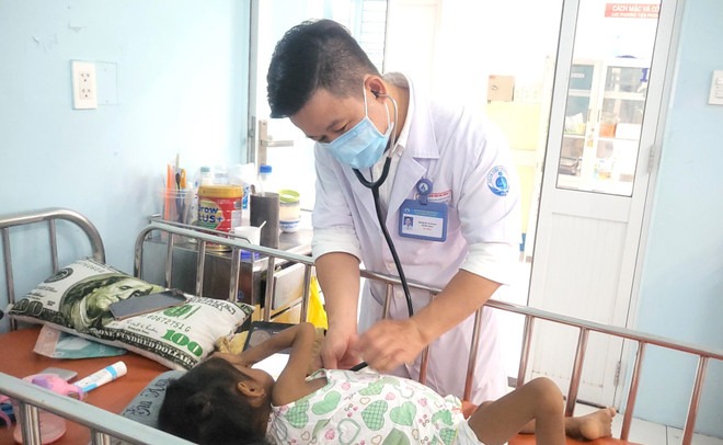 Bác sĩ điều trị cho trẻ em mắc sởi tại Thành phố Hồ Chí Minh. (Ảnh: TTXVN/Vietnam+)