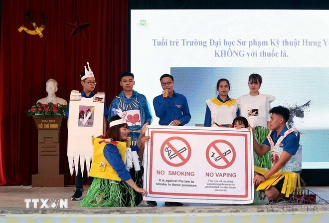 Hội thi tìm hiểu Luật phòng, chống tác hại thuốc lá, sáng kiến về phòng, chống tác hại thuốc lá trong Đoàn viên, thanh niên tỉnh Hưng Yên năm 2018. (Ảnh: Phạm Kiên/TTXVN)
