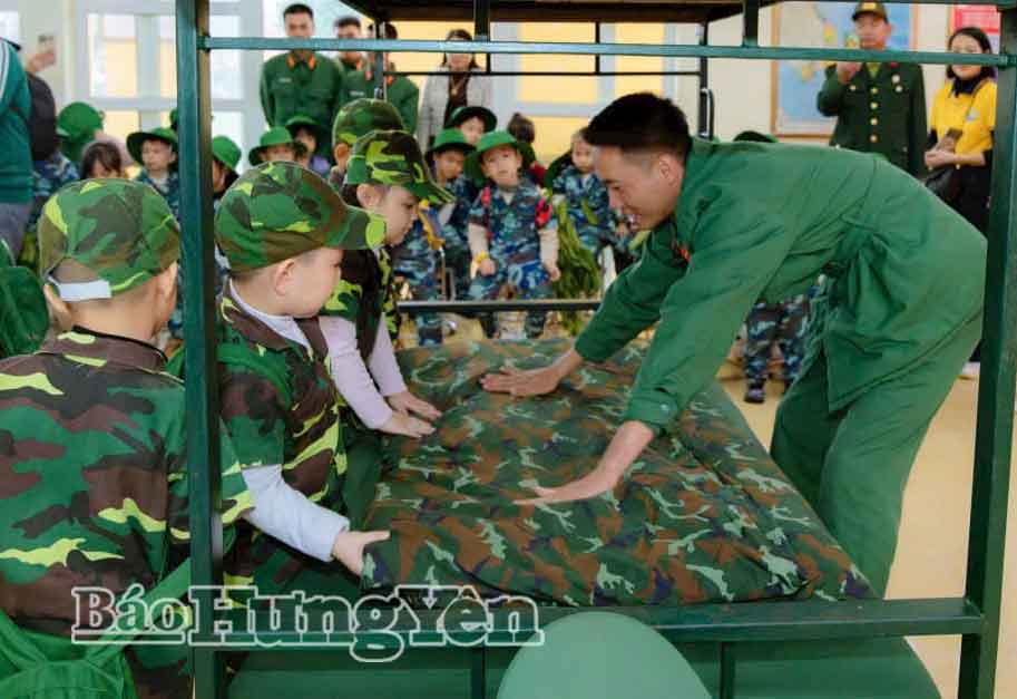 Các em nhỏ Trường Mầm non Vũ Phúc (phường Vũ Phúc) và chiến sĩ Trung đoàn 8, Sư đoàn 395, Quân khu 3 (xã Tiền Hải).