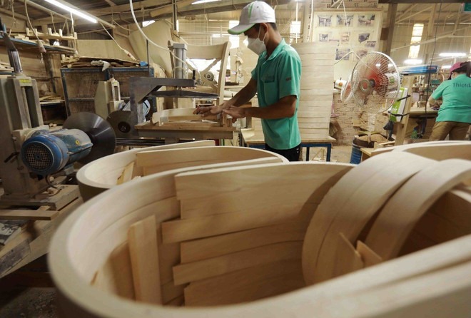 Sản xuất đồ nội thất tại một doanh nghiệp ở Việt Nam. (Ảnh: Vũ Sinh/TTXVN)