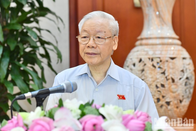 Tổng Bí thư Nguyễn Phú Trọng phát biểu tại buổi gặp mặt Nhóm nữ đại biểu Quốc hội Việt Nam khóa XV. (Ảnh: ĐĂNG KHOA)