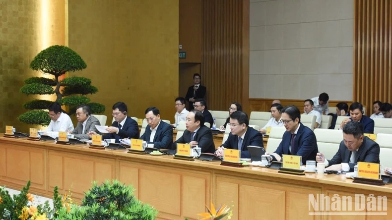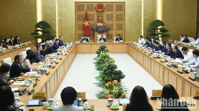 Thủ tướng Chính phủ Phạm Minh Chính chủ trì buổi gặp gỡ với các tập đoàn, doanh nghiệp lớn của Hoa Kỳ đang đầu tư, kinh doanh tại Việt Nam. (Ảnh: TRẦN HẢI)
