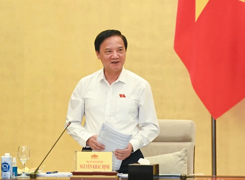 Phó Chủ tịch Quốc hội Nguyễn Khắc Định phát biểu tại buổi làm việc. (Ảnh: Duy Linh)