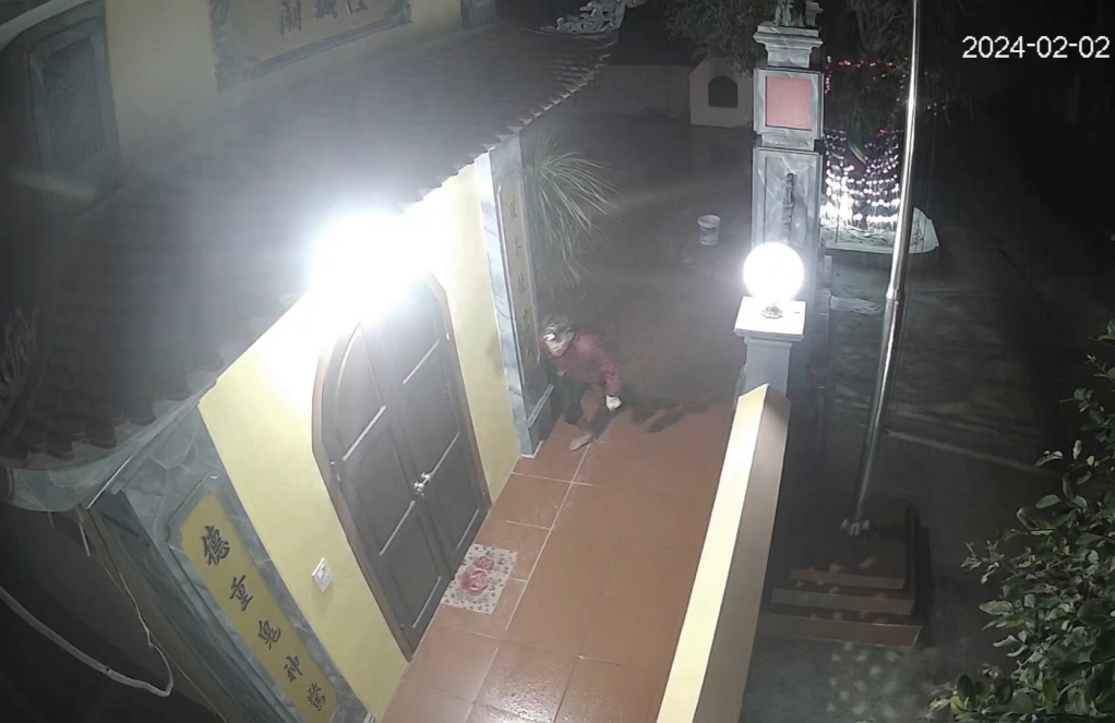 Hình ảnh kẻ gian đột nhập vào chùa thôn Đông Cáp, xã Đoàn Đào (Phù Cừ) ngày 2/2 được camera giám sát an ninh ghi lại