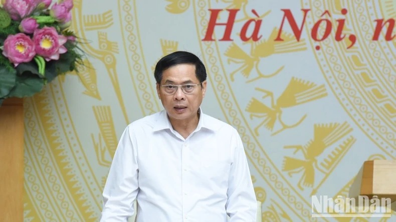 Phó Thủ tướng Chính phủ Bùi Thanh Sơn - Trưởng Ban Chỉ đạo 389 quốc gia phát biểu ý kiến tại cuộc họp. (Ảnh: TRẦN HẢI)
