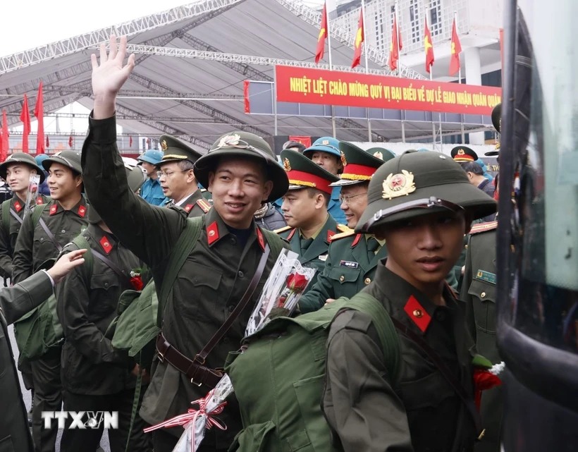 Thanh niên lên đường nhập ngũ. (Ảnh: Văn Điệp/TTXVN)