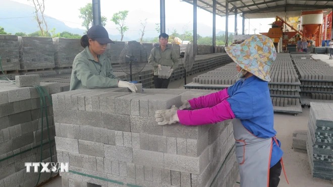 Sản xuất gạch không nung tại xã Xuân Giao, huyện Bảo Thắng, tỉnh Lào Cai. (Ảnh: Hồng Ninh/TTXVN)