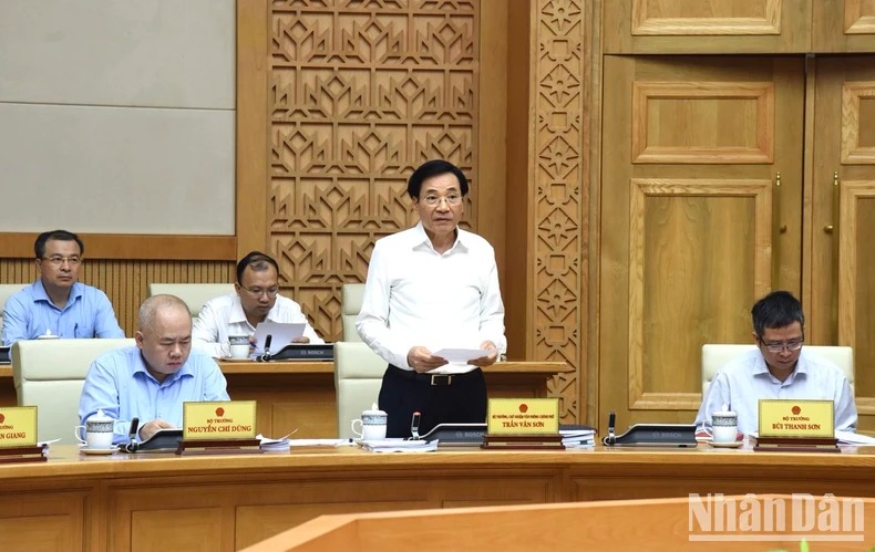 Bộ trưởng, Chủ nhiệm Văn phòng Chính phủ Trần Văn Sơn phát biểu ý kiến tại phiên họp. (Ảnh: TRẦN HẢI)
