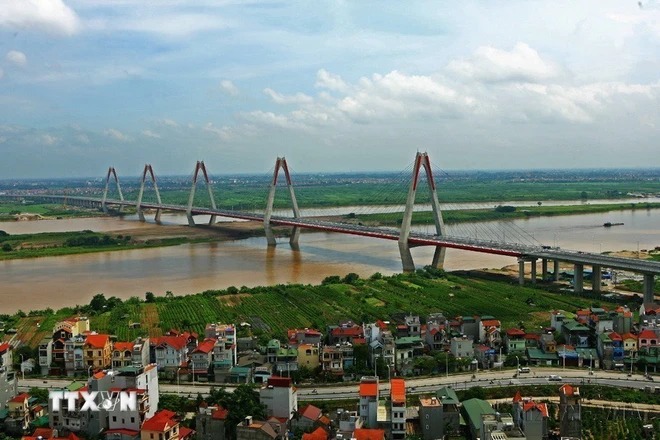 Cầu Nhật Tân - cây cầu được xây dựng bằng nguồn vốn ODA của Nhật Bản. (Ảnh: Huy Hùng/TTXVN)