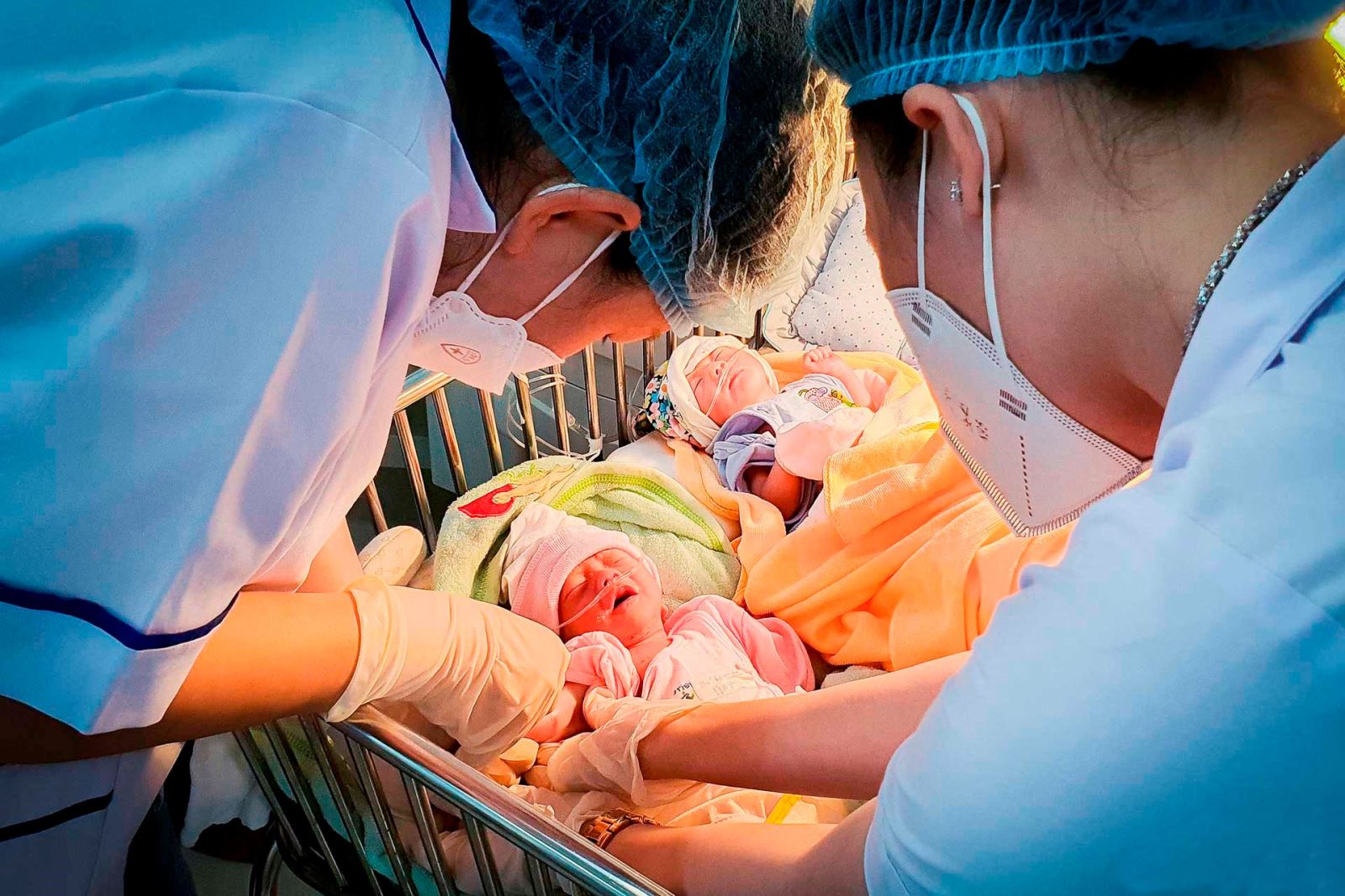 Các bác sĩ chăn sóc trẻ sơ sinh _Ảnh: TTXVN