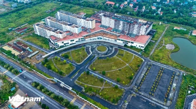 Cơ sở 2 của Bệnh viện Hữu nghị Việt Đức tại Phủ Lý (tỉnh Hà Nam) được xây dựng từ năm 2014 với tổng số tiền đầu tư hơn 9.000 tỷ đồng. Đến nay, sau 10 năm thi công công trình vẫn bỏ hoang gây ra một sự lãng phí rất lớn. (Ảnh: Hoài Nam/Vietnam+)