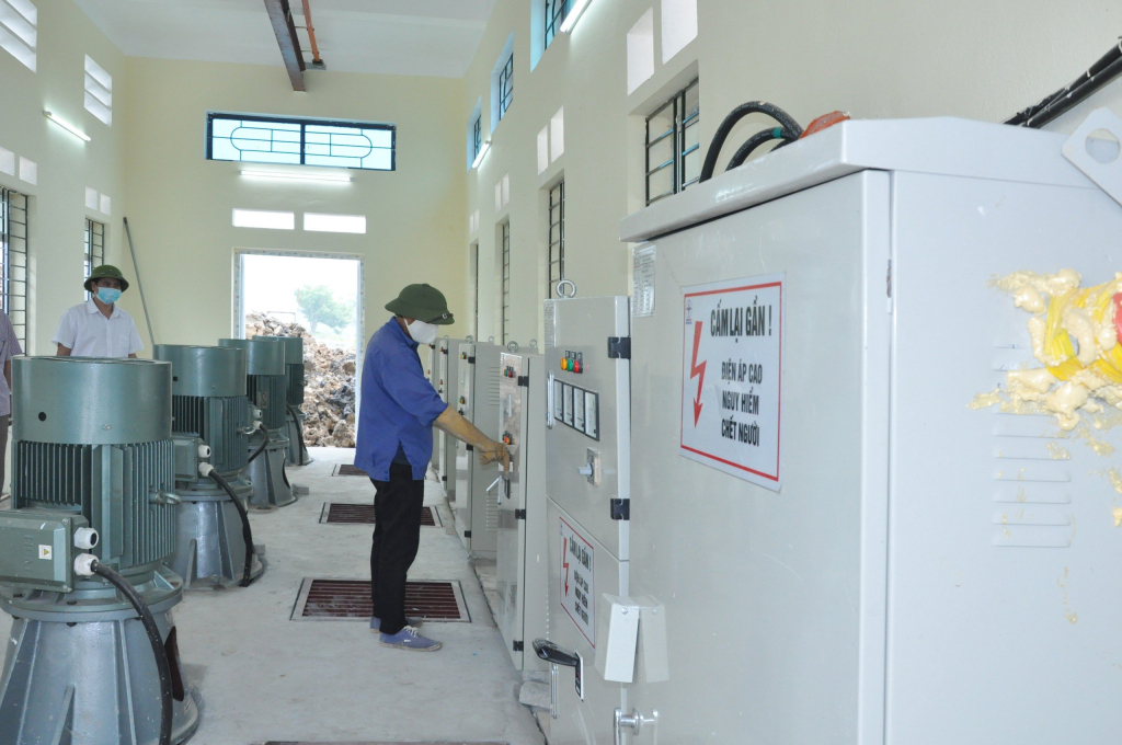 Công nhân Trạm bơm Hoà Đam (thị xã Mỹ Hào) kiểm tra máy bơm phục vụ chống úng