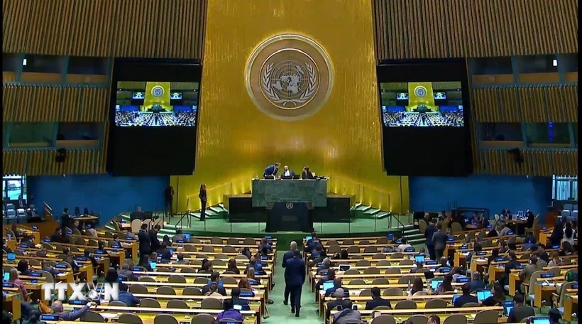 Phiên bỏ phiếu tại Đại hội đồng Liên hợp quốc. (Ảnh: Thanh Tuấn/TTXVN)