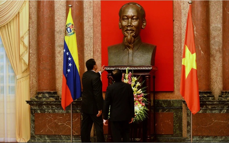 Chủ tịch Đảng Xã hội chủ nghĩa Thống nhất (PSUV), Tổng thống Venezuela Nicolas Maduro và nguyên Chủ tịch nước Trương Tấn Sang trong chuyến thăm Việt Nam năm 2015 (Ảnh do Đại sứ quán Việt Nam tại Venezuela cung cấp)