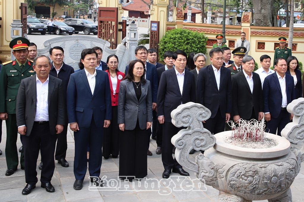 Chủ tịch nước Lương Cường và các đại biểu dâng hương tại Nhà thờ bà Hoàng Thị Loan - thân mẫu của Chủ tịch Hồ Chí Minh ở xã Đồng Tiến (Khoái Châu)