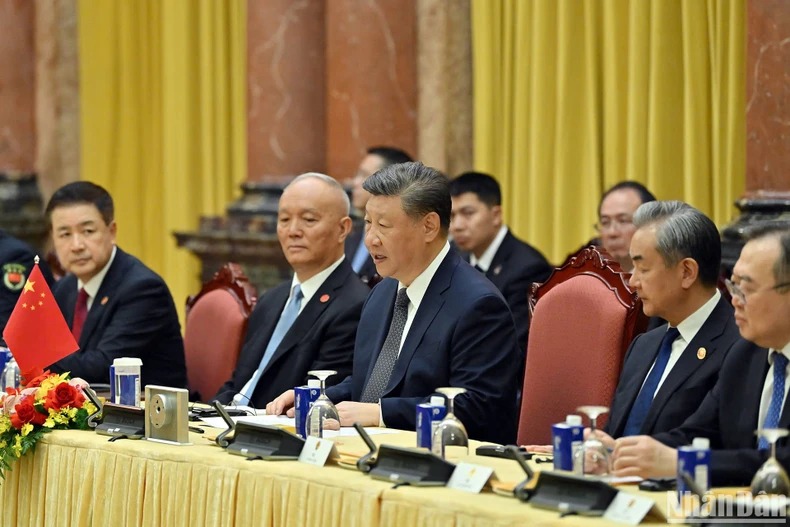 Chủ tịch nước Lương Cường chào mừng Tổng Bí thư, Chủ tịch nước Tập Cận Bình và đoàn đại biểu cấp cao Đảng, Nhà nước Trung Quốc thăm cấp Nhà nước đến Việt Nam, chuyến thăm có ý nghĩa và tầm quan trọng đặc biệt khi diễn ra trong “Năm giao lưu nhân văn Việt Nam-Trung Quốc” kỷ niệm 75 năm thiết lập quan hệ ngoại giao hai nước (18/1/1950-18/1/2025).