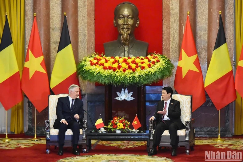 Chủ tịch nước Lương Cường nhiệt liệt chào mừng Nhà vua Philippe cùng Đoàn đại biểu cấp cao Vương quốc Bỉ lần đầu tiên thăm cấp Nhà nước Việt Nam kể từ khi hai nước thiết lập quan hệ ngoại giao năm 1973.