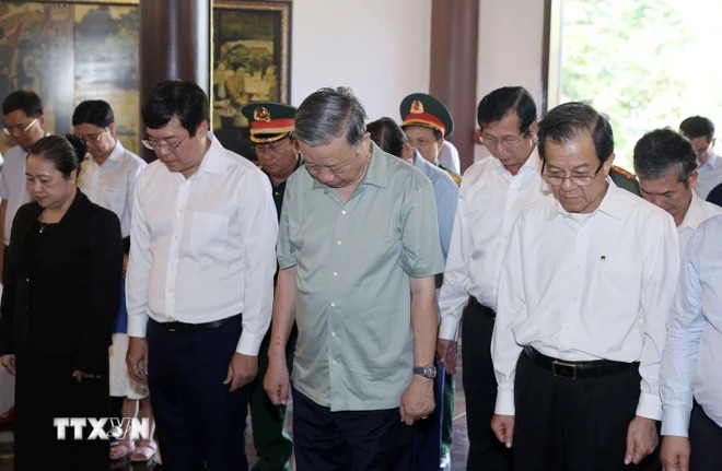 Chủ tịch nước Tô Lâm và đoàn công tác thành kính dâng hương, hoa tưởng nhớ Chủ tịch Hồ Chí Minh, vị lãnh tụ vĩ đại của Đảng và nhân dân Việt Nam, Anh hùng giải phóng dân tộc.