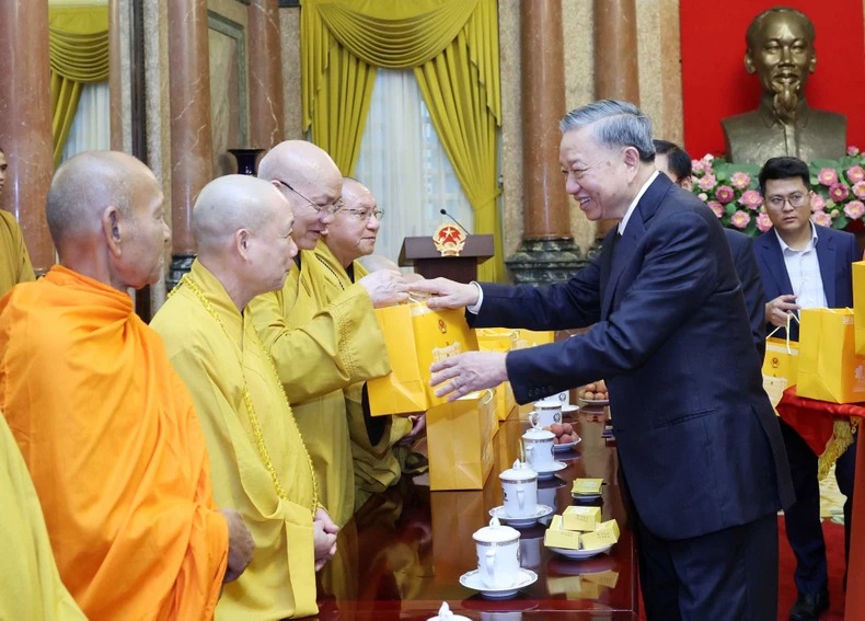 Chiều 13/6, tại Phủ Chủ tịch, Chủ tịch nước Tô Lâm gặp mặt Đoàn đại biểu lãnh đạo chức sắc các tổ chức tôn giáo nhằm biểu dương, tôn vinh, khích lệ lãnh đạo chức sắc, phát huy truyền thống phụng đạo yêu nước, tinh thần đại đoàn kết toàn dân tộc.